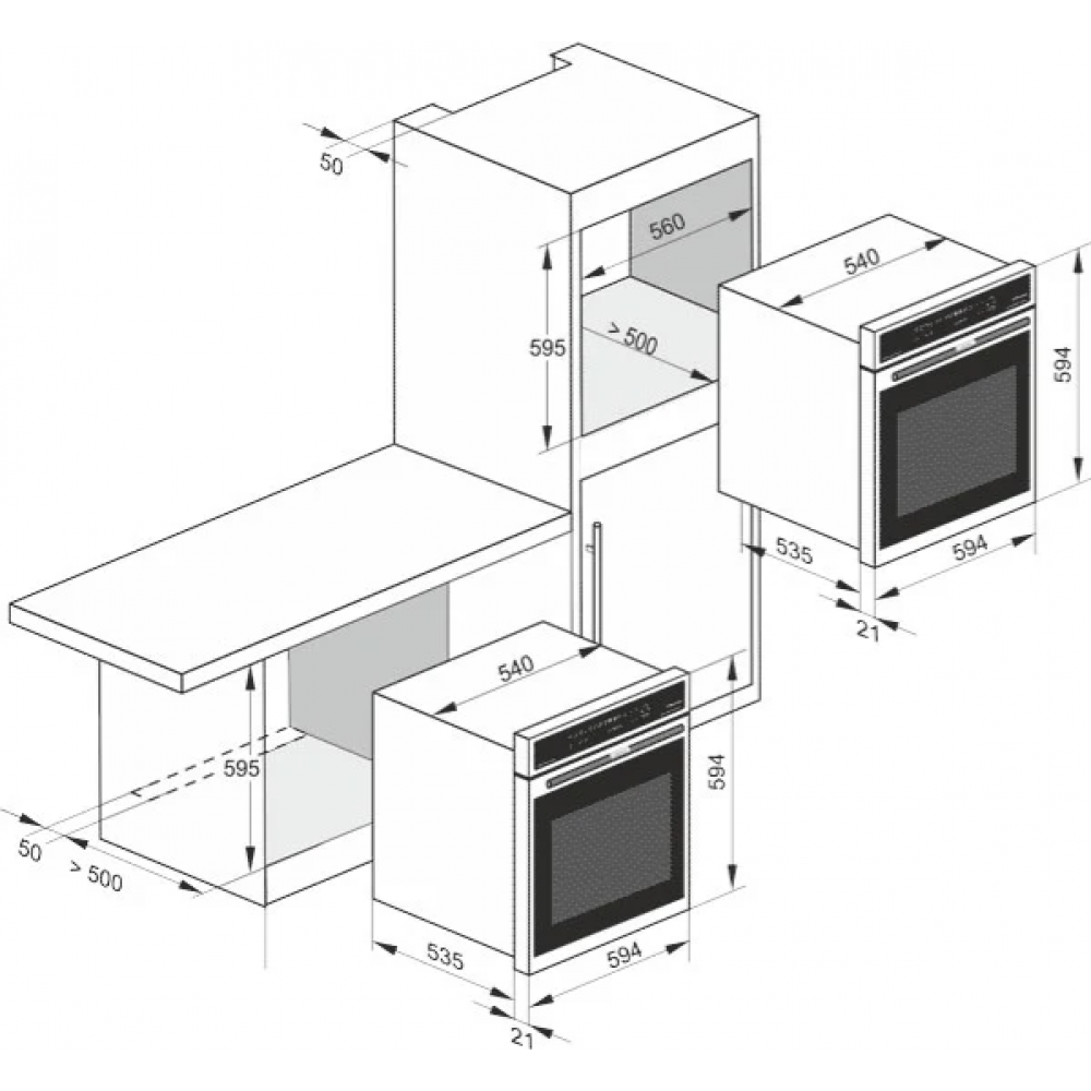 | Минимальные размеры для встраивания (ШxГxВ), мм | 560/595/560 |