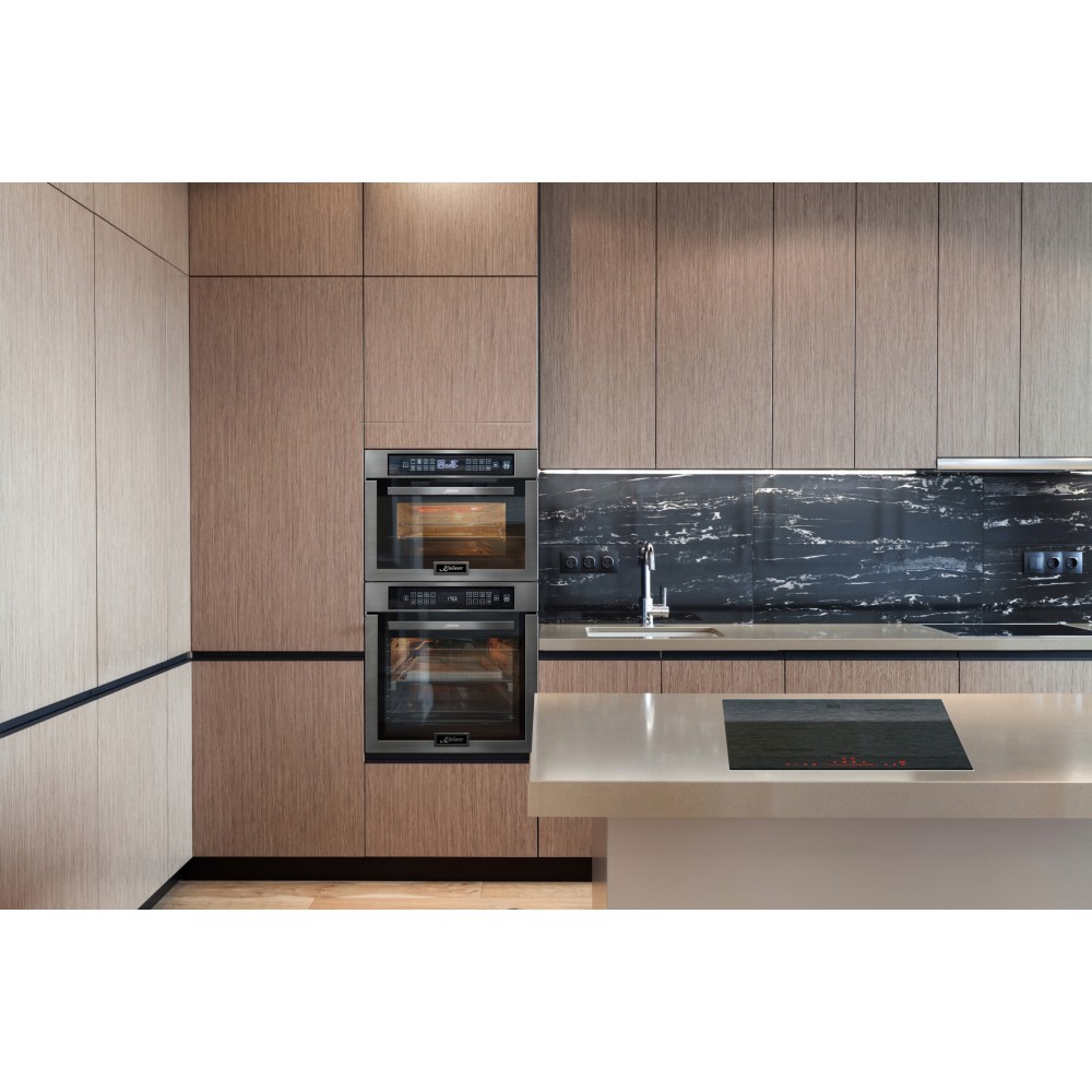 Премиальный дизайн — чёрная Moiré‑стеклокерамика с фацетной обработкой создаёт элегантный облик.