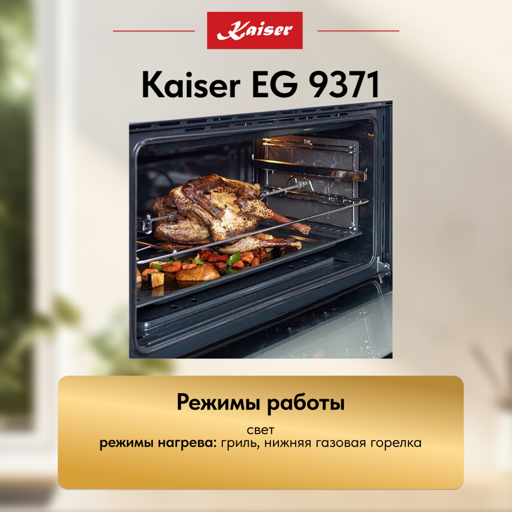 Встраиваемый газовый духовой шкаф Kaiser EG 9371: мощь и удобство в каждой детали