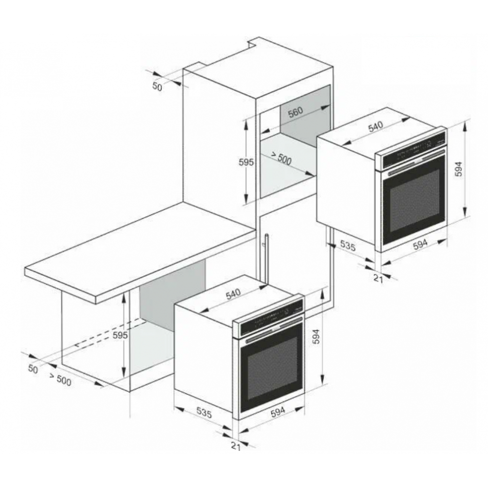 Обеспечивает постоянное охлаждение внутренней части духовки и позволяет встроить приборы в кухонную мебель.